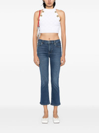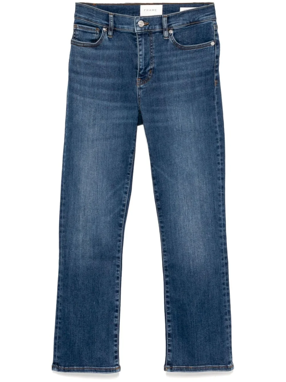 Le high straight jeans Highlights - Indigo blue - Front button and zip fastening Imported Composition Organic Cotton 63%, Cotton 27%, Recycled Polyester 5%, Elastane 5% SIZE & FIT Model measurements Height 5 ft 10 in(1.77 m) Bust/Chest 31.49 in(80 cm) Hips 35.43 in(90 cm) Waist 25.19 in(64 cm) FittingInformation Designed for a skinny fit, these jeans offer a close fit throughout Cropped in length Constructed from stretch denim, this piece offers a stretch fit with durability Washing instructions Machine Wash