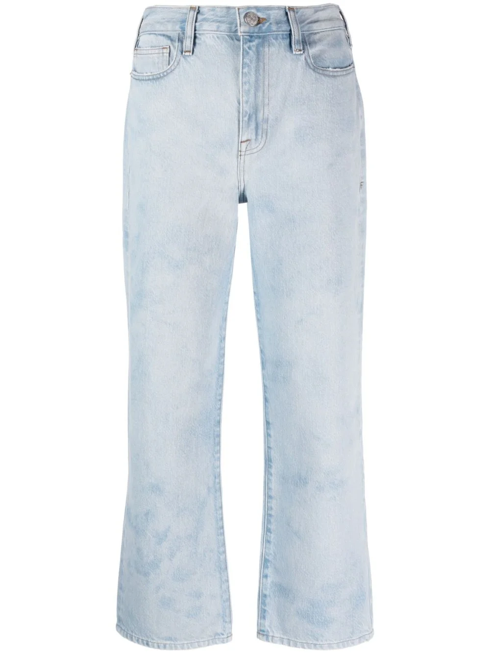 Le Jane cropped jeans Highlights - Ice blue - Cotton blend - Faded effect - Belt loops - High-waisted - Front button fastening - Classic five pockets - Cropped leg - Slight flare Imported Composition Cotton 85%, Recycled Cotton 15% SIZE & FIT Model measurements Height 5 ft 10 in(1.77 m) Bust/Chest 32.28 in(82 cm) Hips 35.03 in(89 cm) Waist 25.19 in(64 cm) FittingInformation Designed for a straight-leg fit, these trousers allow for a close fit at the waist and an unrestricted, comfortable fit over the leg Cropped in length Firm leather offering little flexibility to maintain its durability and sturdiness This piece fits true to size – take your usual size