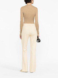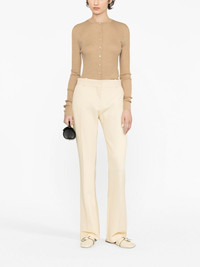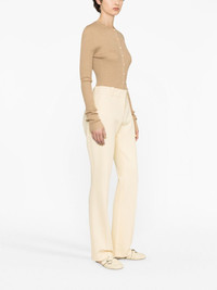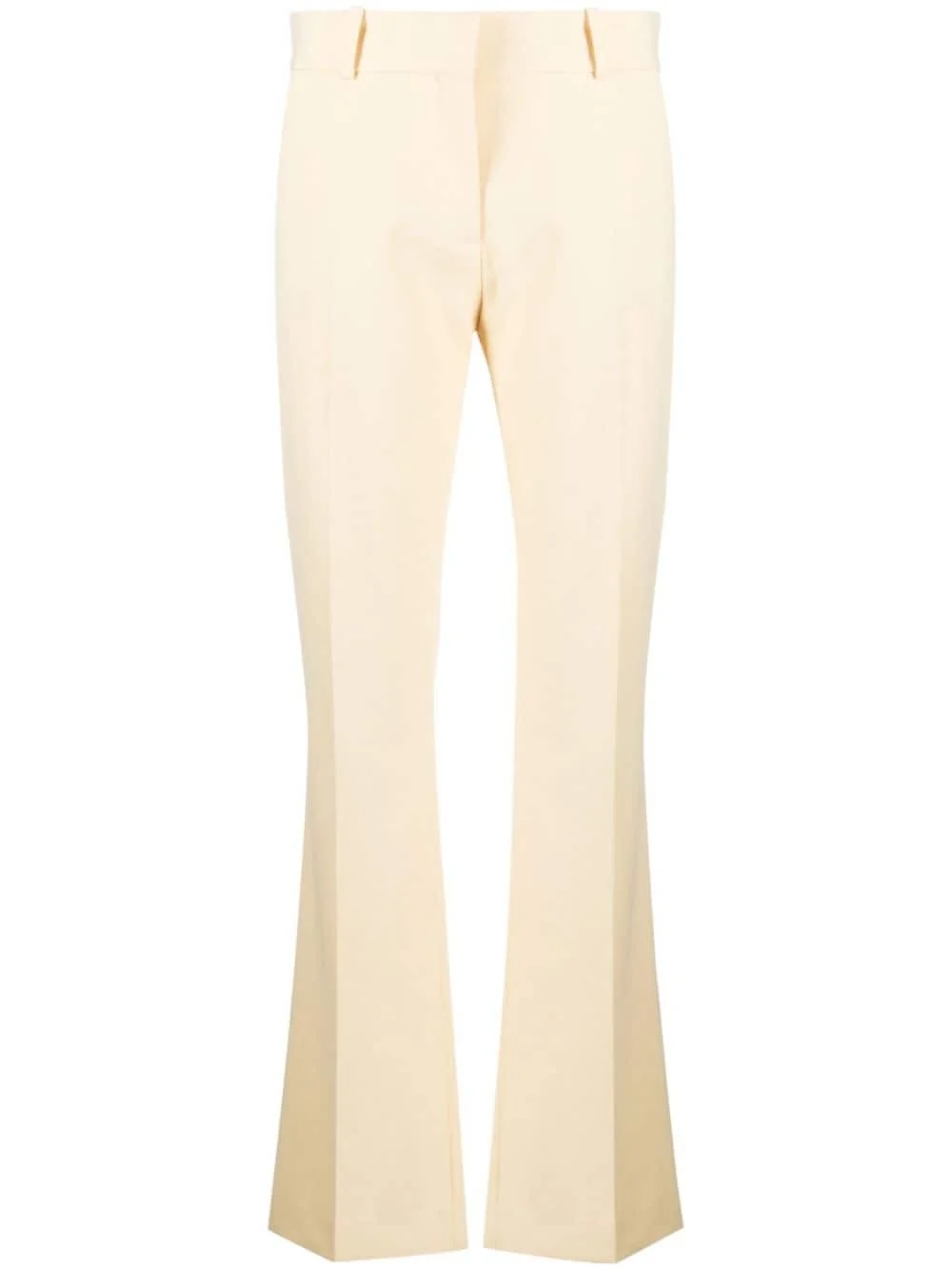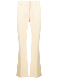Le Mini Boot flared trousers FRAME reimagines its signature Le Mini Boot jeans as trousers for a refined take. Rendered in a butter-yellow hue, they’re woven with a touch of stretch and fall to flared hems. Highlights - Butter yellow - Crepe texture - Stretch-design - Mid-rise - Concealed front fastening - Belt loops - Two side inset pockets - Rear welt pocket - Flared hem Imported Composition Outer: Polyester 68%, Viscose 29%, Elastane 3% Lining: Polyester 65%, Viscose 29%, Elastane 3% SIZE & FIT Model measurements Height 5 ft 10 in(1.78 m) Bust/Chest 30.7 in(78 cm) Hips 34.64 in(88 cm) Waist 23.22 in(59 cm) FittingInformation Designed with a flared hem, these trousers allow for a close fit at the waist with a slim fit over the leg and widening towards the hem Made from a midweight stretch fabric, this piece offers elasticity and flexibility when worn This piece fits true to size – take your usual size