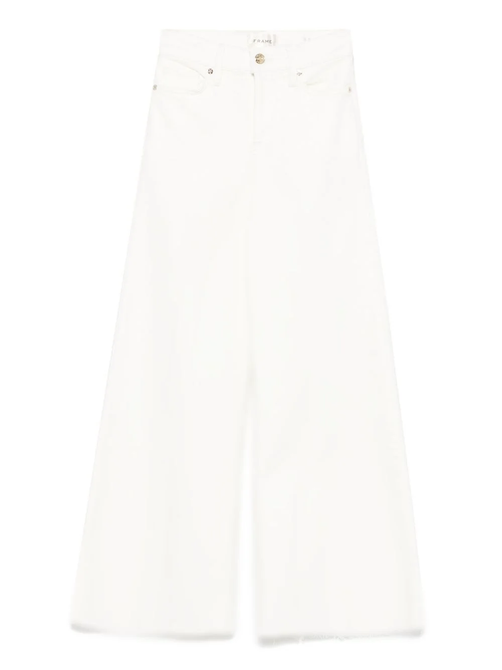 Le Palazzo jeans Highlights - White - Front button and zip fastening - Belt loops - Classic five pockets - Raw-cut edge Imported Composition Cotton 57%, Rayon 38%, Elasterell-P 3%, Spandex/Elastane 2% SIZE & FIT Model measurements Height 5 ft 10 in(1.79 m) Bust/Chest 33.07 in(84 cm) Hips 35.82 in(91 cm) Waist 24.01 in(61 cm) FittingInformation Designed with a flared hem, these jeans allow for a close fit at the waist with a slim fit over the leg and widening towards the hem Cropped in length Constructed from stretch denim, this piece offers a stretch fit with durability