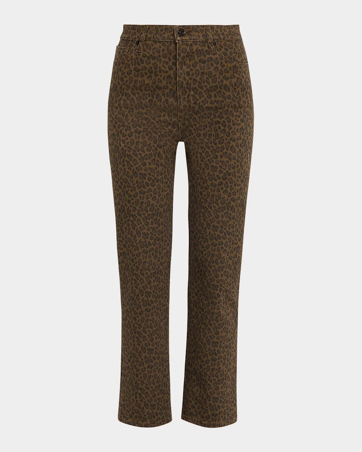 FRAME "Le Sleek Straight" jeans crafted from leopardprint denim Approx. 11" rise; 28" inseam High rise Fivepocket style Slim fit Cropped length Button/zip fly; belt loops Cotton Machine wash cold Imported