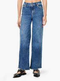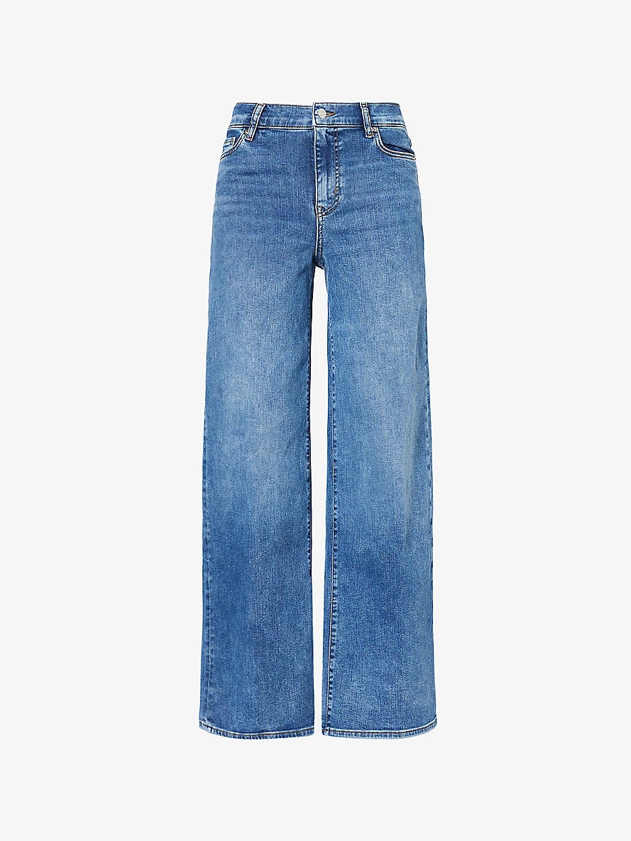 PRODUCT DETAILS - FRAME stretch-denim blend jeans - 49% cotton, 21% recycled cotton, 17% recycled polyester, 11% lyocell, 2% elastane - Exposed button and concealed zip-fly fastening at front - Relaxed fit, high-rise, wide leg, five-pockets, faded wash and whiskering - Machine wash at 30°C - Made in Turkey - True to size - Size 27: rise 11in / 28cm, inside leg 31in / 79cm, leg opening 22in / 56cm - Model is 5ft 10in/1.78m and wears a size 27 - Midweight, stretchy Ref: R04420749