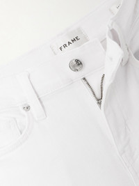 FRAME's 'Le Slim Palazzo' jeans are designed with a high-rise waist and wide legs that are neatly pressed for a touch of polish. Made from white denim, they have a classic five-pocket construction and go with nearly anything in your wardrobe.