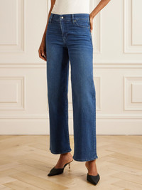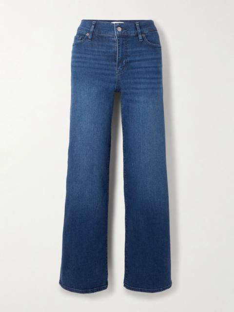 FRAME's 'Le Slim Palazzo' jeans are made from gently faded dark-blue denim that's blended with a touch of stretch, ensuring a comfortable fit. They have straight legs that will complement a variety of shoes. Size & Fit - Fits true to size, however those who are between sizes should take the smaller size - Mid-rise, designed for a straight-leg fit - Slightly short in length - Mid-weight, slightly stretchy denim - Size 26 jeans have an inside leg of 30"/ 77cm - Model is 177cm/ 5'10" and is wearing a size 26 Model measurements: - Bust: 86cm/ 34" - Waist: 65cm/ 25.5" - Hip: 90cm/ 35.5" Details & Care - Dark-blue denim - Button and concealed zip fastening at front - 49% cotton, 21% pre consumer recycled cotton, 17% post consumer recycled polyester, 11% Lyocell, 2% elastane - Machine wash - Designer wash: Femma