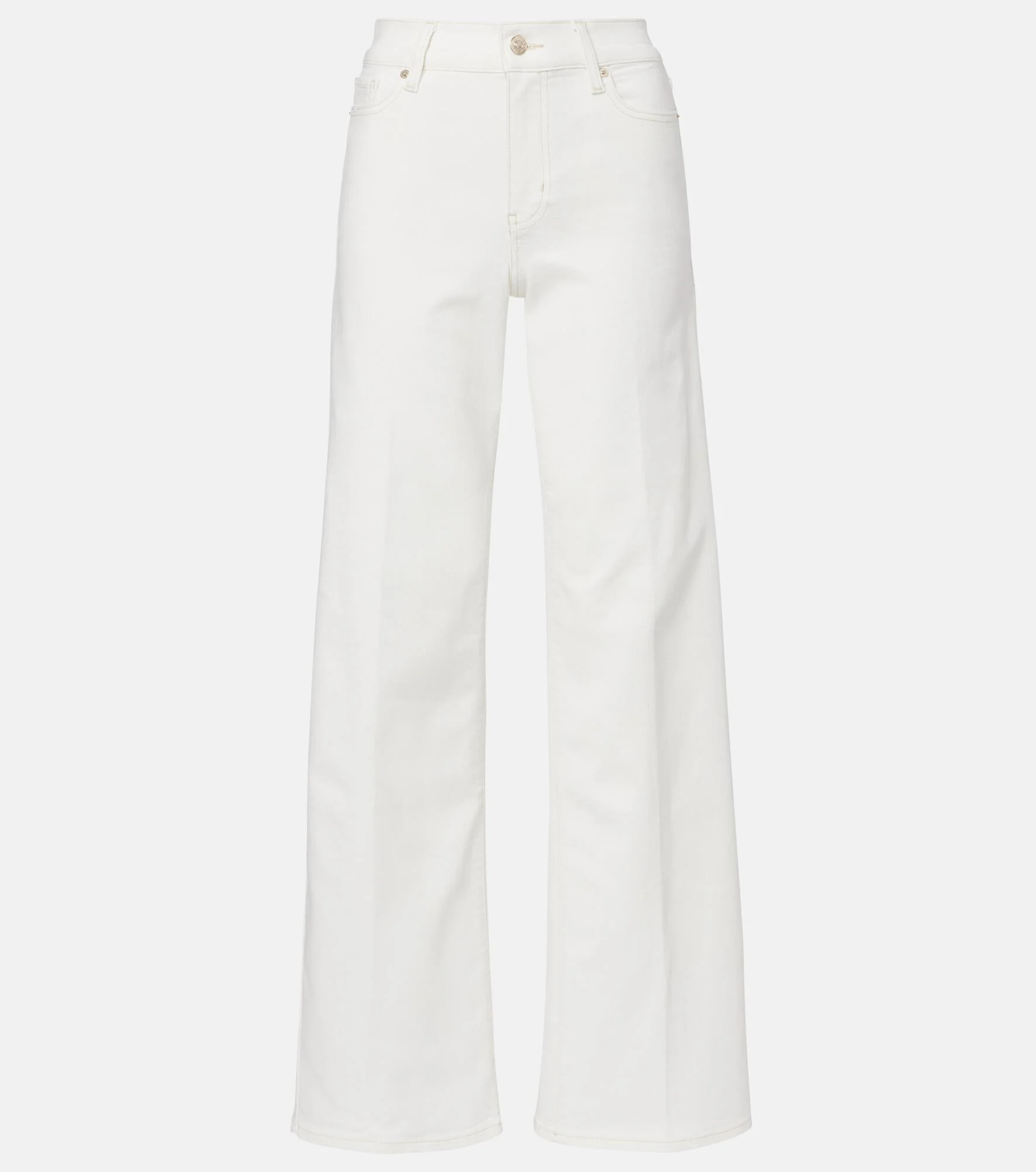 Frame creates iconic denim designs using fair manufacturing practices and sustainably sourced materials. These Le Slim Palazzo jeans are fitted at the waist and flow down to a subtle wide-leg silhouette. Product Details - Material: 57% cotton, 38% rayon, 3% elasterell-p, 2% elastane - Care instructions: machine wash at 30 degrees - Made in Turkey - Color: white - Designer color name: Au Natural Clean - Closure: zip and button fastening - Belt loops - Pockets: five pockets - Item number: P01158284 Size & Fit - True to size - Slightly stretchy fabric - Wide-leg - Mid-rise - The model seen in the picture is 178cm-5'10" and wearing a size 26