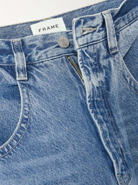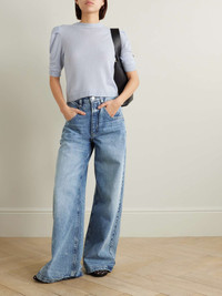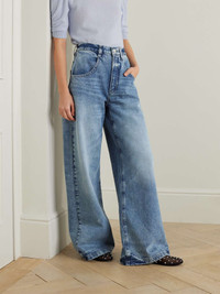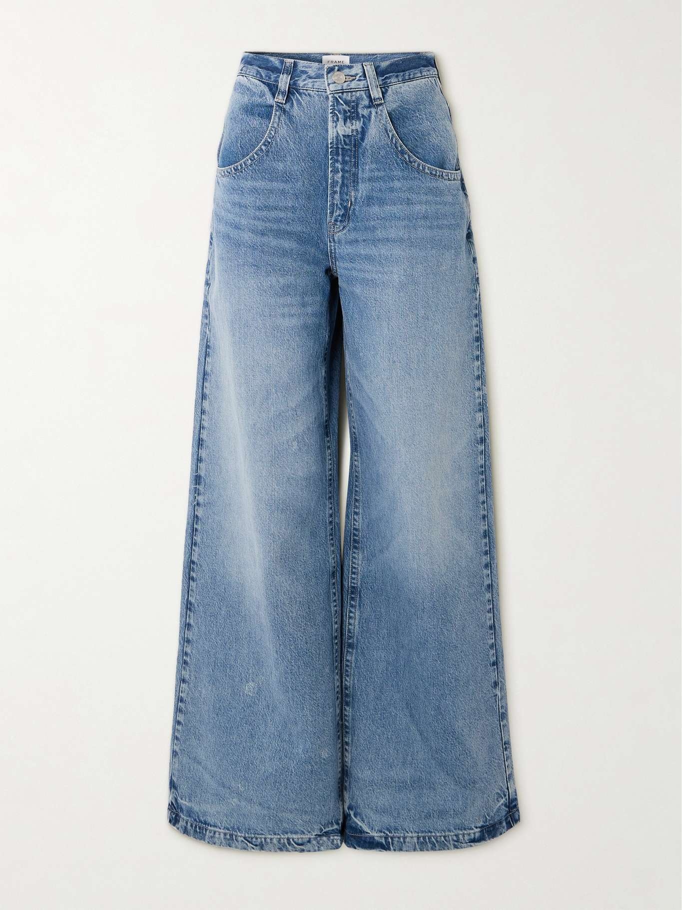 EDITORS'NOTES FRAME’s ‘Skater’ jeans call to mind nostalgic Y2K styles with their relaxed, baggy fit. They’re cut from rigid denim that’s woven from regenerative and recycled cotton and fall to long, wide legs. Tuck in a T-shirt to spotlight the high waist. <br><br>This product was created using Considered Materials. Find out more about NET SUSTAIN <a href="https://www.net-a-porter.com/en-gb/campaigns/net-sustain">here.</a> SIZE & FIT - Fits true to size, take your normal size - High-rise, designed for a wide-leg fit - Particularly long in length - Mid-weight, non-stretchy fabric - Size 26 jeans have an inside leg of 33”/ 84cm - Model is 177cm/ 5'10" and is wearing a size 26 DETAILS & CARE - Blue denim - Button and concealed zip fastening at front - 80% regenerative cotton, 20% recycled cotton - Machine wash - Designer wash: Rhode