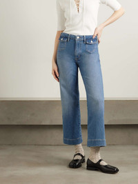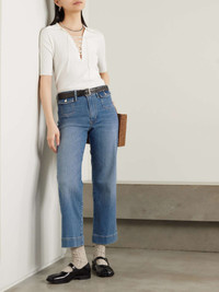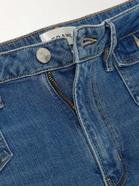EDITORS'NOTES FRAME's jeans will become a true staple in any wardrobe, no matter your style. They're cut from classic blue denim in a timeless slim fit and have pockets at the front and back. Complement the cropped length with kitten heels. SIZE & FIT Model measurements: - Fits true to size, however those who are between sizes should take the larger size - High-rise, designed for a straight-leg fit - Cropped length - Mid-weight, slightly stretchy fabric - Size 27 jeans have an inside leg of 28"/ 71cm - Model is 175cm/ 5'9" and is wearing a size 27 - Bust: 81cm/ 32" - Waist: 65cm/ 25.5" - Hip: 92cm/ 36" DETAILS & CARE - Blue denim - Button and concealed zip fastening at front - 77% cotton, 18.5% modal, 3.5% elasterell-p, 1% elastane - Machine wash