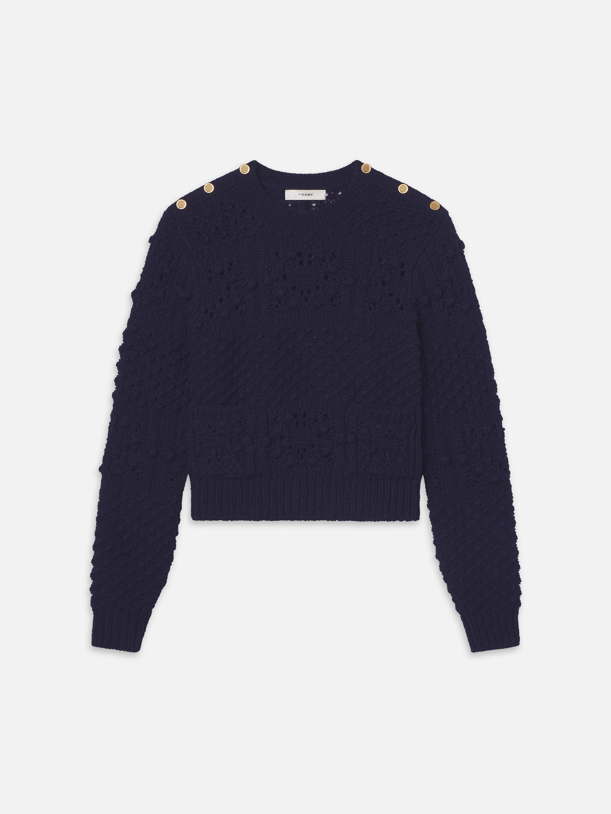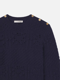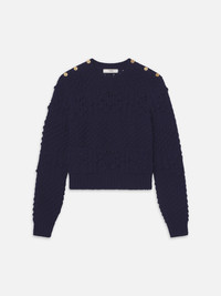 Crafted from a textured crochet knit, the Patch Pocket Sweater features a slim fit, front patch pockets, and finished with decorative buttons along the shoulders. Materials & Care Dry Clean Only 45% Acrylic/30% Baby Alpaca/25% Lana Wool 19.5" Long From Shoulder WP25KSW059-NAVY