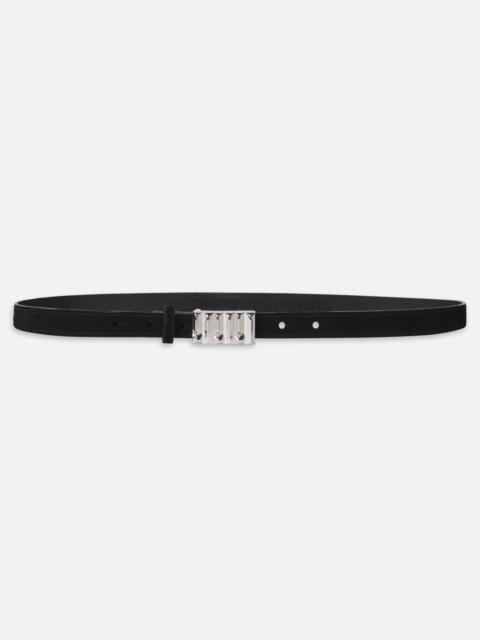 Cut to a slightly narrower width than the Sculptural Belt, the petite version keeps the standout buckle: a sculpted, ridged bar that's the perfect complement to silver jewelry. Crafted in an audited tannery from 100% leather, it's LWG certified for sustainable quality. Materials & Care Wipe Clean. Do Not Wash 100% Cow Leather WS25ABT009-BLK