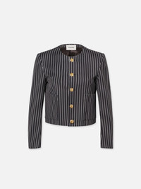 The Button Front Jacket is crafted from a drapey suiting twill. Cut to a boxy fit, it features light shoulder pads for structure, bracelet-length sleeves, and clean patch pockets. It's fully lined and finished with gold nautical-inspired buttons. Pair back to the matching Tailored Skirt for a modern take on Summer suiting. Materials & Care Dry Clean Only 60% Polyester/40% Wool 21" Long From Shoulder WE24WJA001-DKNM
