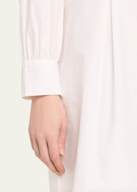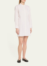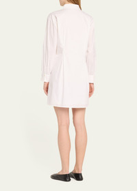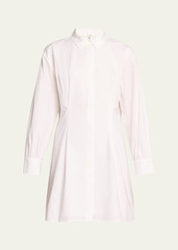 Pleated Poplin Long-Sleeve Mini Shirtdress