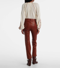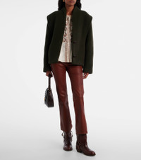 The Reboot Crop pants from Frame showcase the brand's dedication to meticulous craft and everyday sophistication. This iteration of the beloved design is made from soft leather and comes in a bootcut silhouette that hits above the ankle. Product Details - Material: 100% lamb leather - Care instructions: specialist clean - Made in Turkey - Designer color name: Whiskey - Item color: brown - Pockets: five pockets - Closure: zipper fly, button fastening - Belt loops - Item number: P01099086 Size & Fit - Fits small to size - we recommend trying one size larger - Non-stretchy fabric - Bootcut - The model seen in the picture is 178cm-5'10" and wearing a size 27