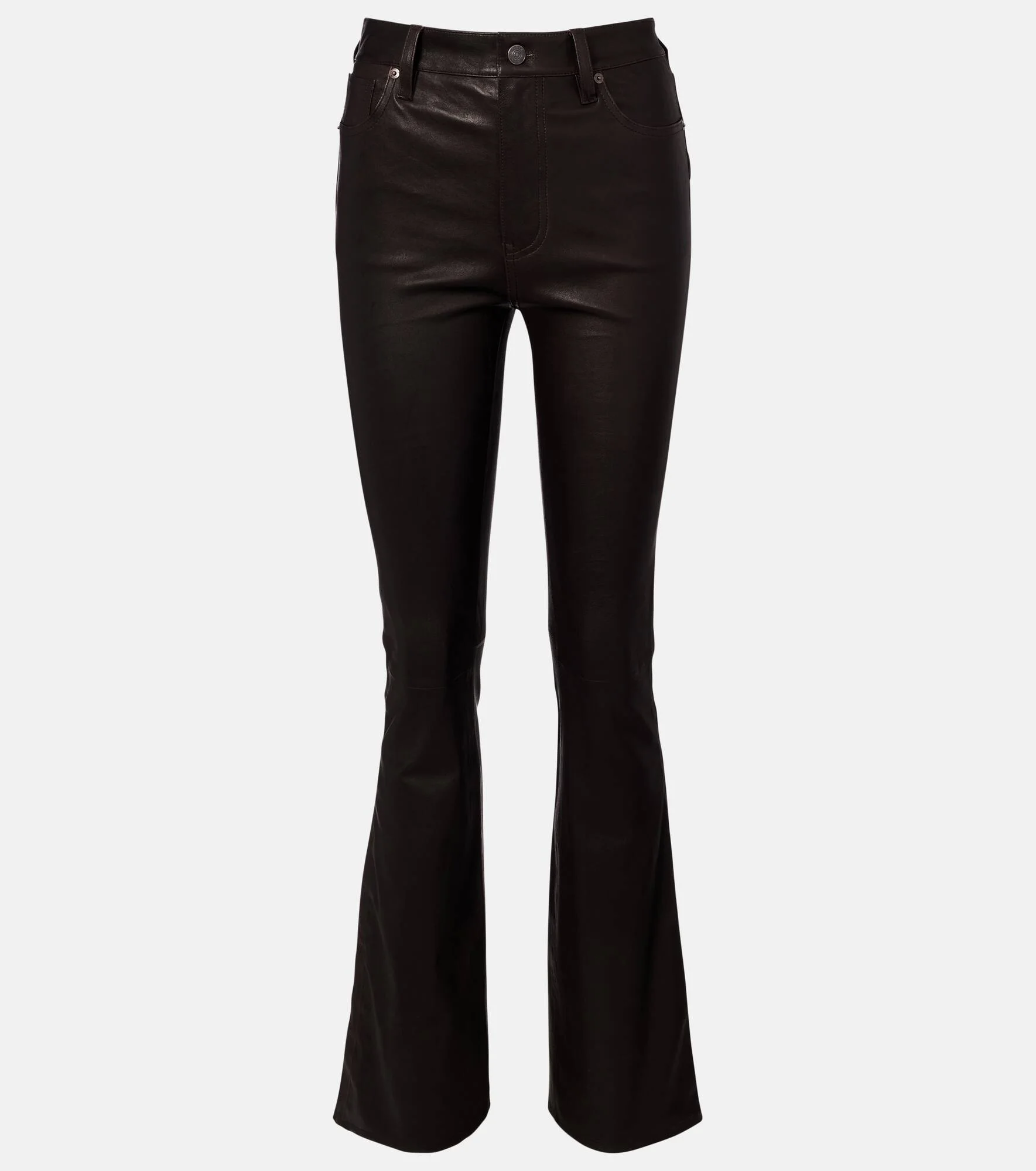 The Reboot Crop pants from Frame showcase the brand's dedication to meticulous craft and everyday sophistication. This iteration of the beloved design is made from soft leather and comes in a bootcut silhouette. Product Details - Material: 100% lamb leather - Care instructions: specialist clean - Made in Turkey - Designer color name: Carob - Item color: brown - Closure: zipper fly, button fastening - Pockets: five pockets - Belt loops - Item number: P01122334 Size & Fit - Fits small to size - we recommend trying one size larger - Slightly stretchy fabric - Bootcut - High-waisted - The model seen in the picture is 178cm-5'10" and wearing a size 27