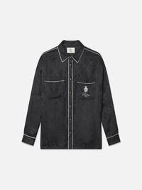 The pajama trend never left—and this shirt from FRAME x Ritz Paris is here to prove it. Crafted in sumptuous 100% silk, it features the Ritz's historic emblem embroidered at the pocket. Wear it with the coordinating pleated trouser for an elegant "just rolled out of bed at the Ritz" look. Each piece from the FRAME x Ritz Paris collaboration is crafted from luxe materials and designed to evoke the opulence and comfort of staying inside the world's most luxurious hotels. Materials & Care Dry Clean Only 100% Silk 28.375" Long From Shoulder RW23WSH001-BKMU