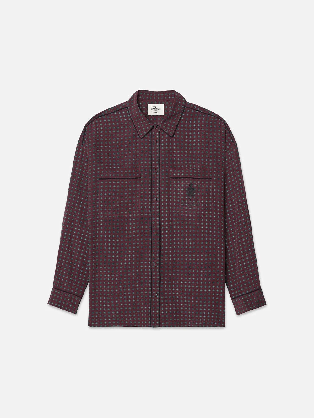 The pajama trend never left—and this shirt from FRAME x Ritz Paris is here to prove it. Crafted in sumptuous 100% silk, it features the Ritz's historic emblem embroidered at the pocket. Wear it with the coordinating pleated trouser for an elegant "just rolled out of bed at the Ritz" look. Each piece from the FRAME x Ritz Paris collaboration is crafted from luxe materials and designed to evoke the opulence and comfort of staying inside the world's most luxurious hotels. Materials & Care Dry Clean Only 100% Silk 28 3/8" Long From Shoulder RW23WSH003-BORM