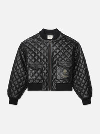 Introducing the Quilted Bomber Jacket—a luxurious souvenir from FRAME x Ritz Paris that encapsulates the chic Parisienne's off-duty aeshetic. Crafted in buttery-soft leather, it's cut to a form-fitting silhouette and features the iconic hotelier's embroidered gold emblem at the front pocket. Each piece from the FRAME x Ritz Paris collaboration is crafted from luxe materials and designed to evoke the opulence and comfort of staying inside the world's most luxurious hotels. Materials & Care Clean Professionally By A Leather And Suede Specialist 100% Leather 20.75" Long From Shoulder RW23LJA001-BLK