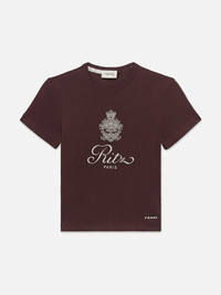 A Ritz Paris x FRAME capsule collection essential for tucking into denim flares on days off, layering under a blazer at the office, and pairing with cutoffs at the petanque court. This 100% cotton shrunken tee is cut for a slim, streamlined fit, and features the FRAME and Ritz Paris logos embroidered in contrasting white. Each piece from the FRAME x Ritz Paris collaboration is crafted from luxe materials and designed to evoke the opulence and comfort of staying inside the world's most luxurious hotels. Materials & Care 100% Cotton Machine Wash Inside Out 21.25" Long From Shoulder LWTS1959-BORD