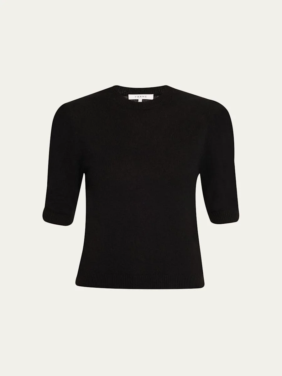 FRAME crewneck sweater featuring ruched sleeves in a cashmere-blend About 39" from shoulder to hem Three-quarter sleeves Slim fit Hem sits a the hip Pullover style Cashmere/wool Dry clean Imported Model is 5'10"/177cm. Online Inquiries: BGS21_T55CG| Store Inquiries: #4430278
