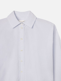 Welcome warmer weather in crisp, lightweight seersucker. This lightly textured button-down features pin-thin blue stripes in 100% cotton. Materials & Care Hand Wash Cold 100% Cotton 27.5" Long From Shoulder WS25WSH034-LCHM