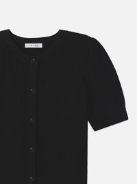 A timeless piece for transitional styling, this cardigan has a short-sleeve design crafted from a luxe wool-cashmere blend. Subtle puff sleeves are a FRAME favorite, complete with contrast ribbing along the button placket for a gentle distinction. Materials & Care Dry Clean Only 70% Wool/30% Cashmere 20" Long From Shoulder WP25KSW012-BLK
