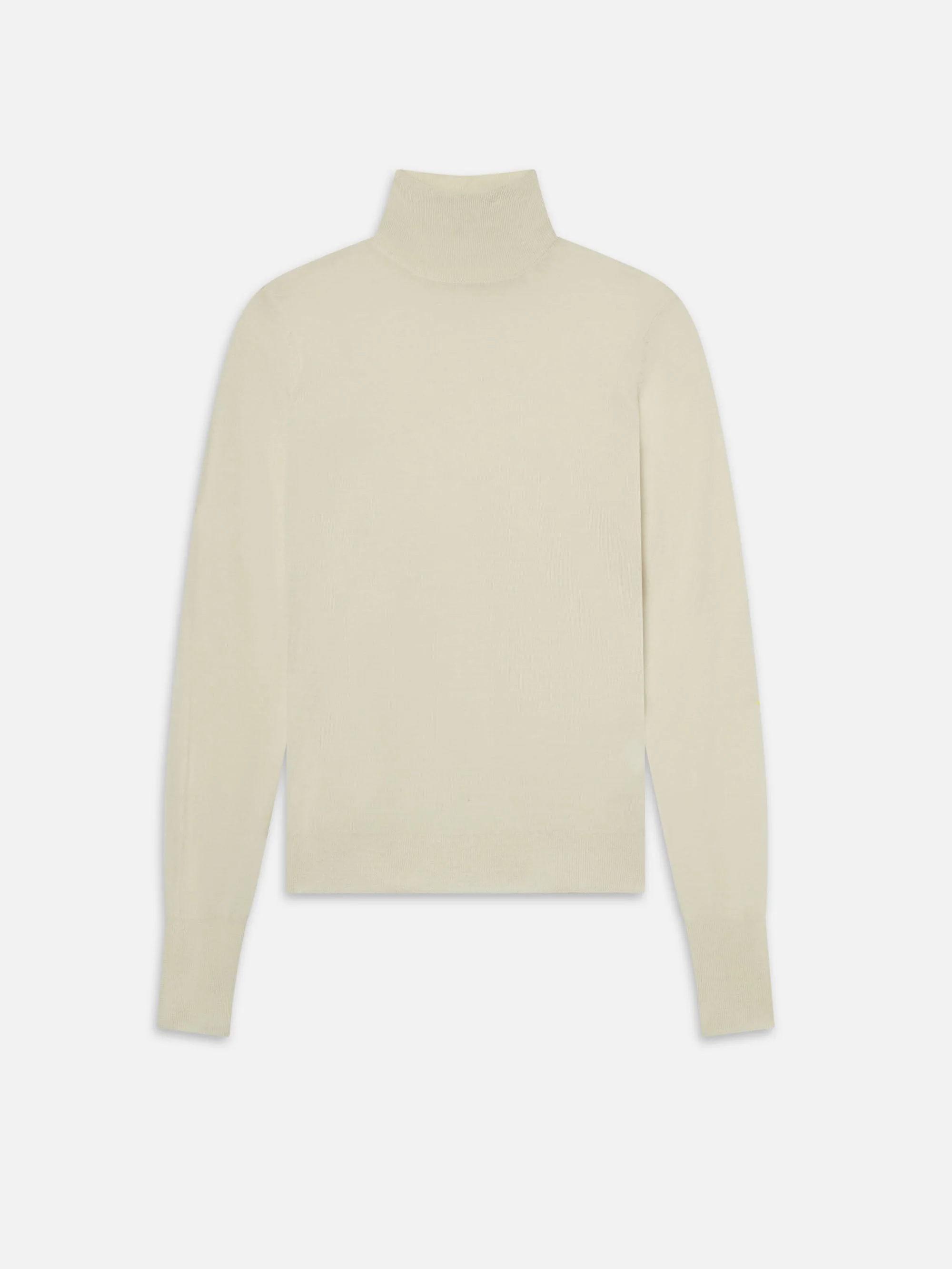 Crafted from an ultra-smooth silk-wool blend, the Slim Turtleneck is the lightweight uniform staple that seamlessly tucks into jeans or a tailored pant. Materials & Care Dry Clean Only 100% Wool 22.5" Long From Shoulder WF25KSW059-CREA