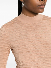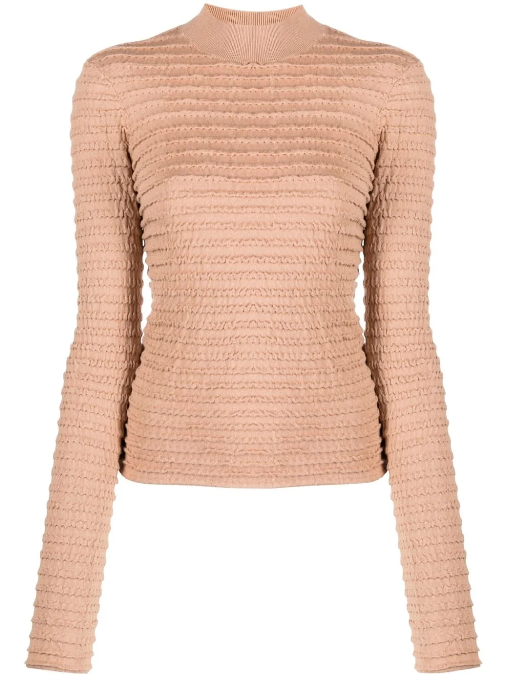 smocked mock-neck jumper Highlights - Blush beige - Cotton-silk blend - Knitted construction - Smocking details - Ribbed edge - Mock neck - Long sleeves - Straight hem Imported Composition Silk 53%, Cotton 43%, Other fibres 3%, Spandex/Elastane 1% SIZE & FIT Model measurements Height 5 ft 11 in(1.8 m) Bust/Chest 31.49 in(80 cm) Hips 36.61 in(93 cm) Waist 24.4 in(62 cm) FittingInformation Designed for a close fit throughout Made with a midweight knit, this piece offers some stretch This piece fits true to size – take your usual size
