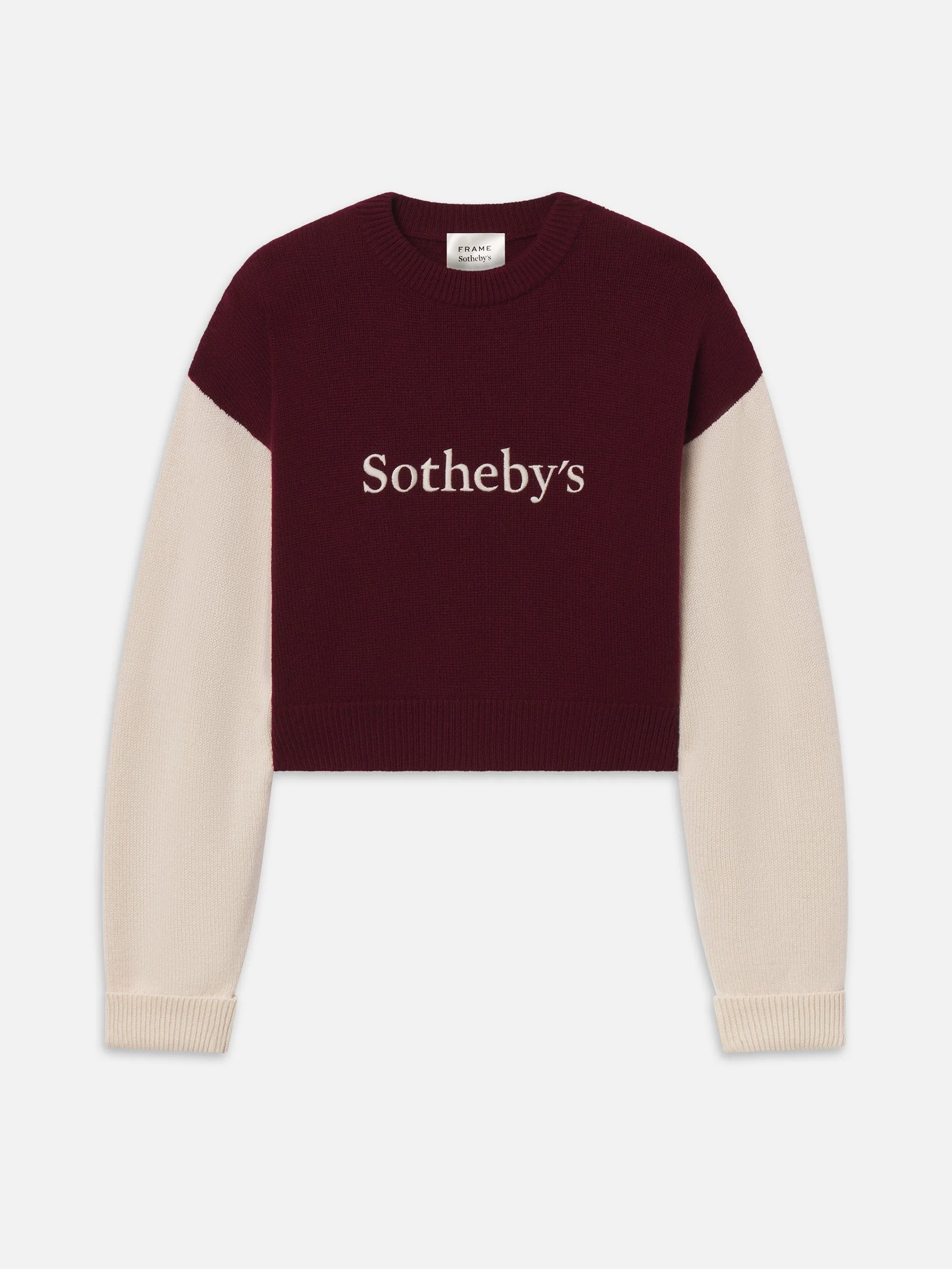 Soft and easy with a touch of nostalgia. This cropped cashmere sweater is knit in rich burgundy with cream sleeves and finished with ribbed trims and the Sotheby’s logo across the chest. An everyday luxury—just as good layered as it is worn on its own. Materials & Care Dry Clean Only 100% Cashmere 17.75" Long From Shoulder WE25KSW045-BRGM