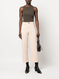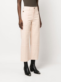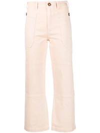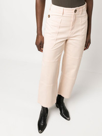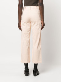 straight-leg utility trousers light pink stretch-cotton high waist concealed front fastening two side pouch pockets straight leg Imported Composition Cotton 98%, Spandex/Elastane 2% SIZE & FIT Model measurements Height 5 ft 10 in(1.77 m) Bust/Chest 32.28 in(82 cm) Hips 35.03 in(89 cm) Waist 25.19 in(64 cm) Measurement FRONT RISE 11.02 in(28 cm) WAIST 26.77 in(68 cm) HIPS 34.64 in(88 cm) FittingInformation Designed for a straight-leg fit, these trousers allow for a close fit at the waist and an unrestricted, comfortable fit over the leg Made from a midweight stretch fabric, this piece offers elasticity and flexibility when worn This piece fits true to size – take your usual size