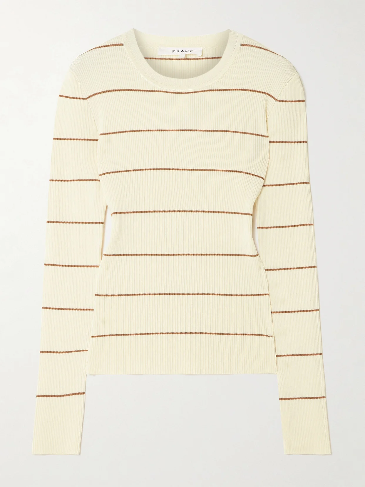 FRAME's T-shirt is a staple that you'll wear endlessly. It's made from jersey that's ribbed to enhance the close fit and patterned with wide, narrow stripes. Wear yours with jeans and a cardigan or blazer.