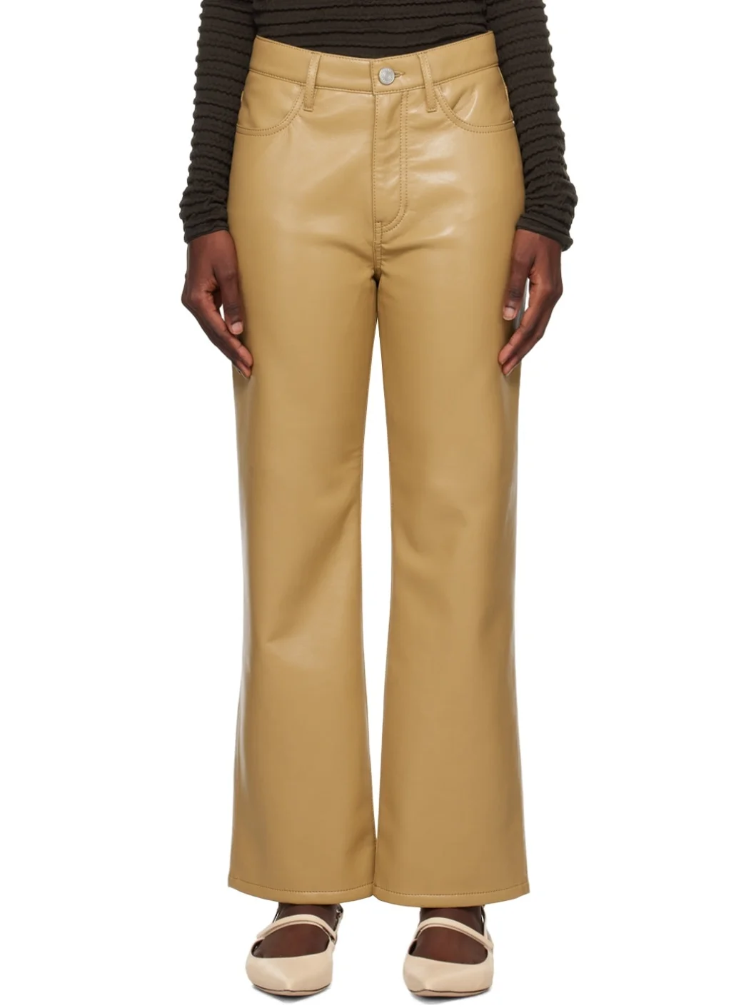 Straight-leg buffed recycled leather-blend pants. · High rise · Belt loops · Four-pocket styling · Zip-fly · Cropped leg · Logo-engraved silver-tone hardware Supplier color: Light camel 50% recycled leather. 30% polyurethane, 20% polyester. Made in Morocco 232455F087005