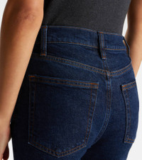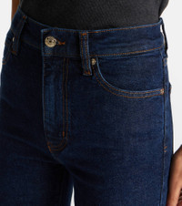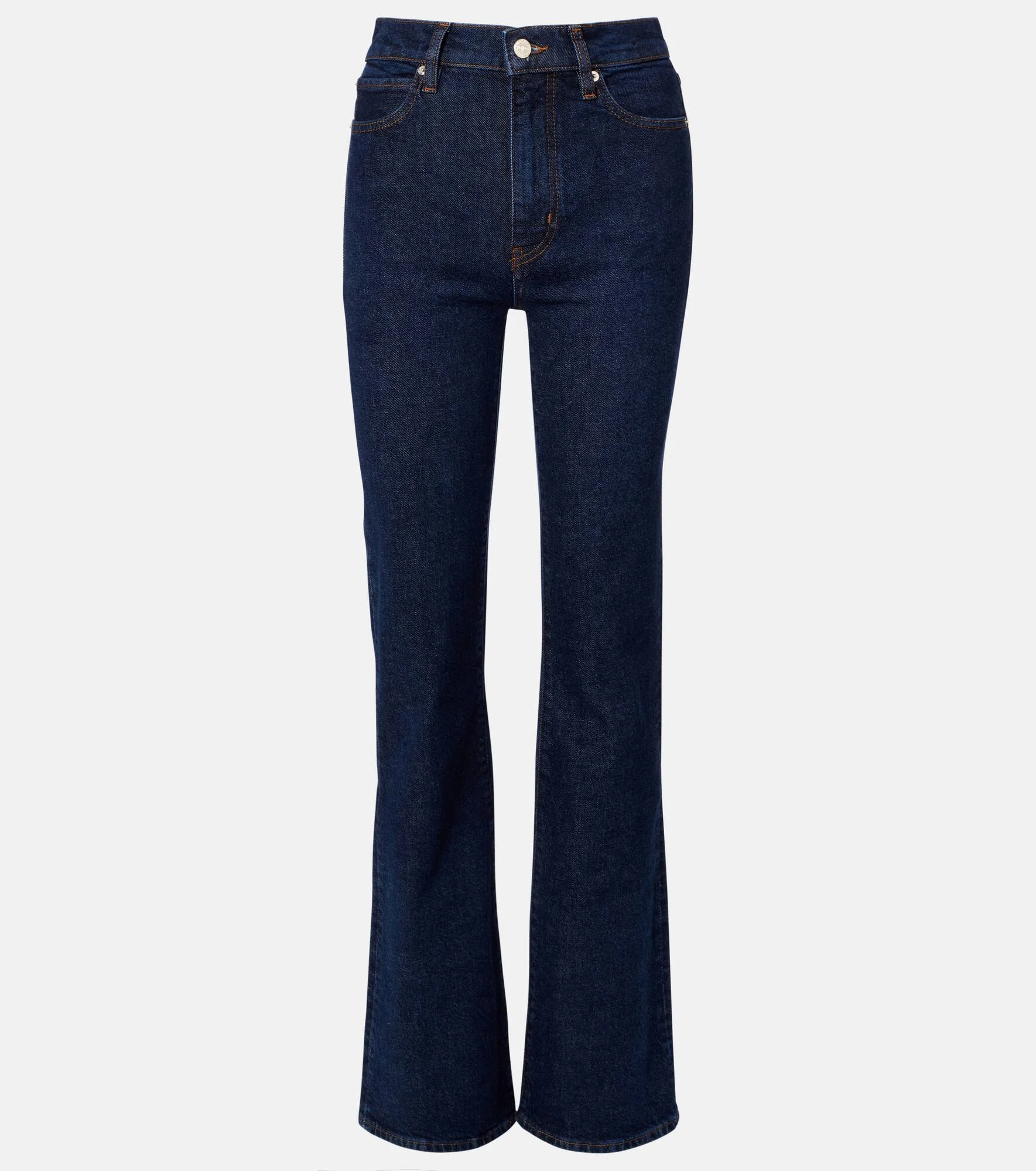 Frame creates iconic designs using fair manufacturing practices and sustainably sourced materials. The Arrow jeans are defined by a flattering high-rise fit, ending in a relaxed bootcut silhouette. Product Details - Material: 99% cotton, 1% elastane - Care instructions: machine wash at 30 degrees - Made in Turkey - Designer color name: Taboo - Item color: blue - Closure: zipper fly, button fastening - Pockets: five pockets - Belt loops - Item number: P01122344 Size & Fit - Fits small to size - we recommend trying one size larger - Non-stretchy fabric - Bootcut - High-rise - The model seen in the picture is 178cm-5'10" and wearing a size 27