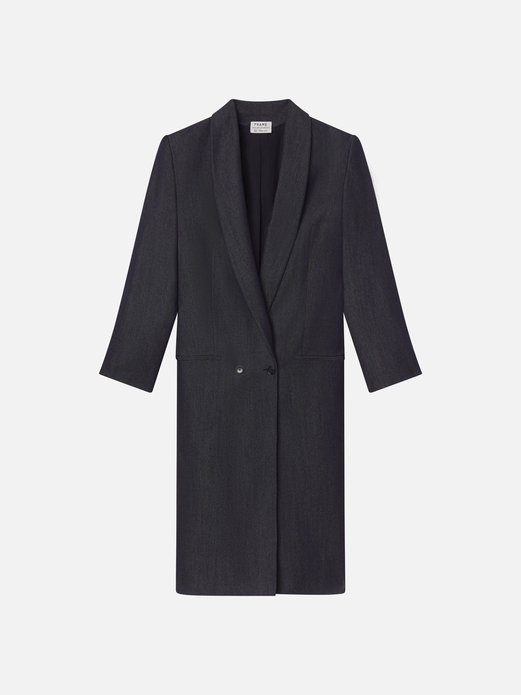 This dramatic, oversized coat is expertly crafted in Italy to evoke the look of denim. Style it with the Uniform Trouser and Unison Blazer for the full suit—and maximum impact. A fresh take on suiting, set apart by its daring design and impeccable craftsmanship. Materials & Care Dry Clean Only 100% Wool 51" Long From Shoulder 8028896-DENI