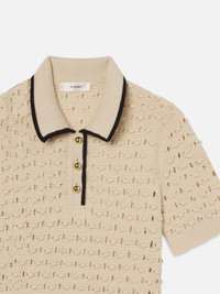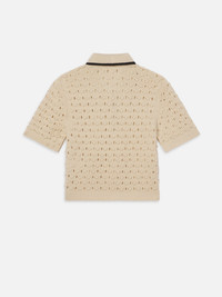 Our signature Bauble texture—lightweight, airy, and dimensional—features pointelle openwork made for warm days. Finished with a contrast collar and gold buttons, this polo pairs with the Bauble Skirt for the knit set of summer. Materials & Care Dry Clean Only 100% Cotton 18.25" Long From Shoulder WE25KSW043-CREA