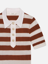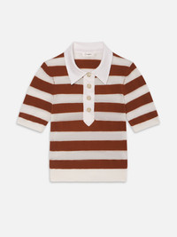 The Bold Stripe Polo is knit from a soft cashmere-cotton blend with elbow-length sleeves, a squared-off placket, and gold dome buttons. Finished with a ribbed hem at the high hip, it’s an elevated staple with a touch of vintage varsity charm. Materials & Care Dry Clean Only 63% Cashmere/37% Cotton 19" Long From Shoulder WE25KSW032-CNMU
