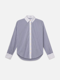 An essential for every closet, this lightweight cotton poplin button-down has a perfectly oversized fit. Flattering as both a light layer or worn alone tucked into your favourite denim. Materials & Care Machine Wash Cold Self: 72% Cotton/26% Nylon/2% Spandex | Combo: 100% Cotton 29.25" Long From Shoulder WP25WSH004-DKCB