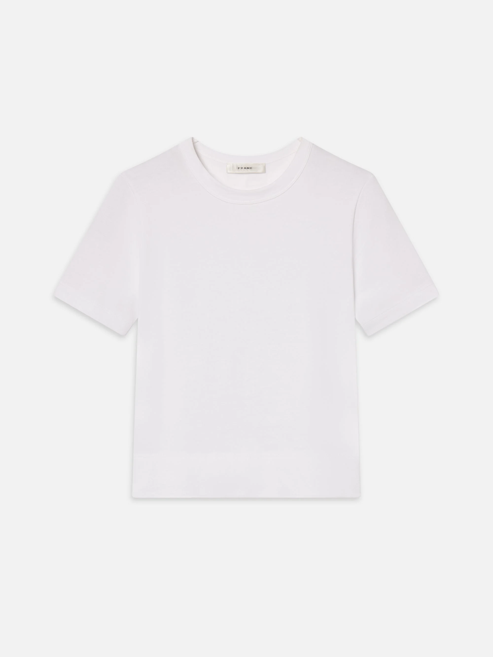 The Boxy Tee is crafted from 100% cotton in a new, slightly cropped fit with a clean, structured shape—designed to pair effortlessly with mid- to high-rise denim. DETAILS - Machine Wash Cold - 100% Cotton - 19.625" Long From Shoulder - WS26JTE008-WHT