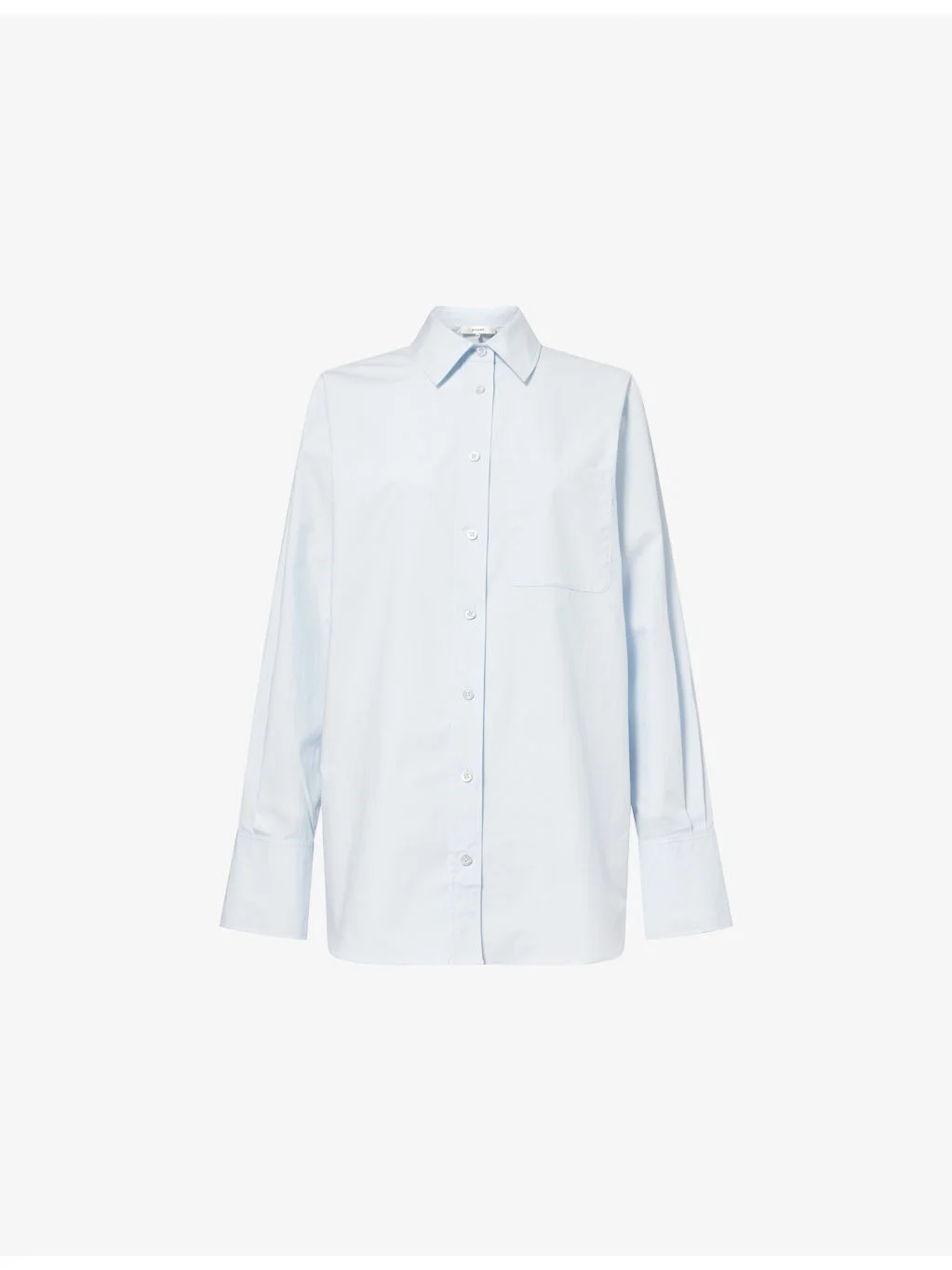 PRODUCT DETAILS - FRAME cotton-poplin shirt - 100% cotton - Exposed button fastening at front - Spread collar - Buttoned cuffs - Relaxed fit, collar, long sleeves, patch pocket at front, straight yoke and pleats at back, curved hem - Dry clean only - True to size - Size small: length 29in / 74cm - Model is 5ft 10in/1.78m and wears a size small - Lightweight, slight stretch Ref: R04595994
