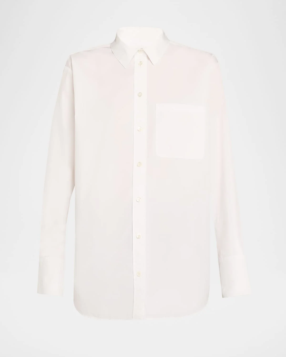 FRAME "The Boy Shirt" in crisp cotton poplin Point collar Long sleeves with button cuffs Chest pocket Relaxed, oversized fit Hem falls to the hip Buttonfront Cotton Machine wash cold Imported