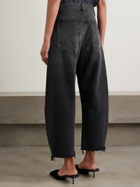The Bubble cropped frayed high-rise barrel-leg jeans Black