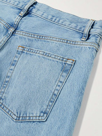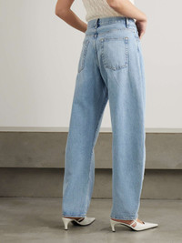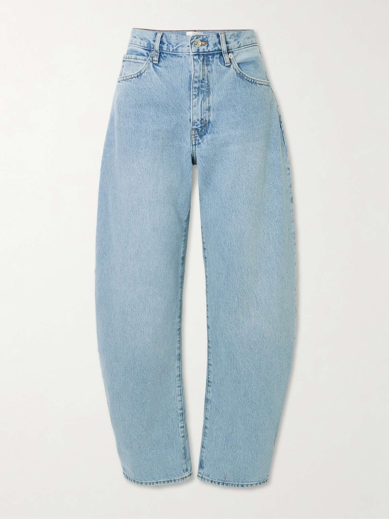 EDITORS'NOTES FRAME's best-selling ‘The Bubble’ jeans are "an exaggerated take on the trending barrel silhouette". They're cut from denim, made from 100% regenerative cotton, and cut to sit high on the waist. Lower-Impact Materials. This product is made using at least 50% lower-impact materials or ingredients. Find out more about our NET SUSTAIN criteria here. SIZE & FIT Model measurements: - Fits true to size, take your normal size - High-rise, designed for a loose fit, tapered at the hem - Mid-weight, non-stretchy denim - Size 26 jeans have an inside leg of 31"/ 79cm - Model is 177cm/ 5'10" and is wearing a size 26 - Bust: 85cm/ 33” - Waist: 66cm/ 26” - Hip: 92cm/ 36” DETAILS & CARE - Light-blue denim - Button and concealed zip fastening at front - 100% regenerative cotton - Machine wash