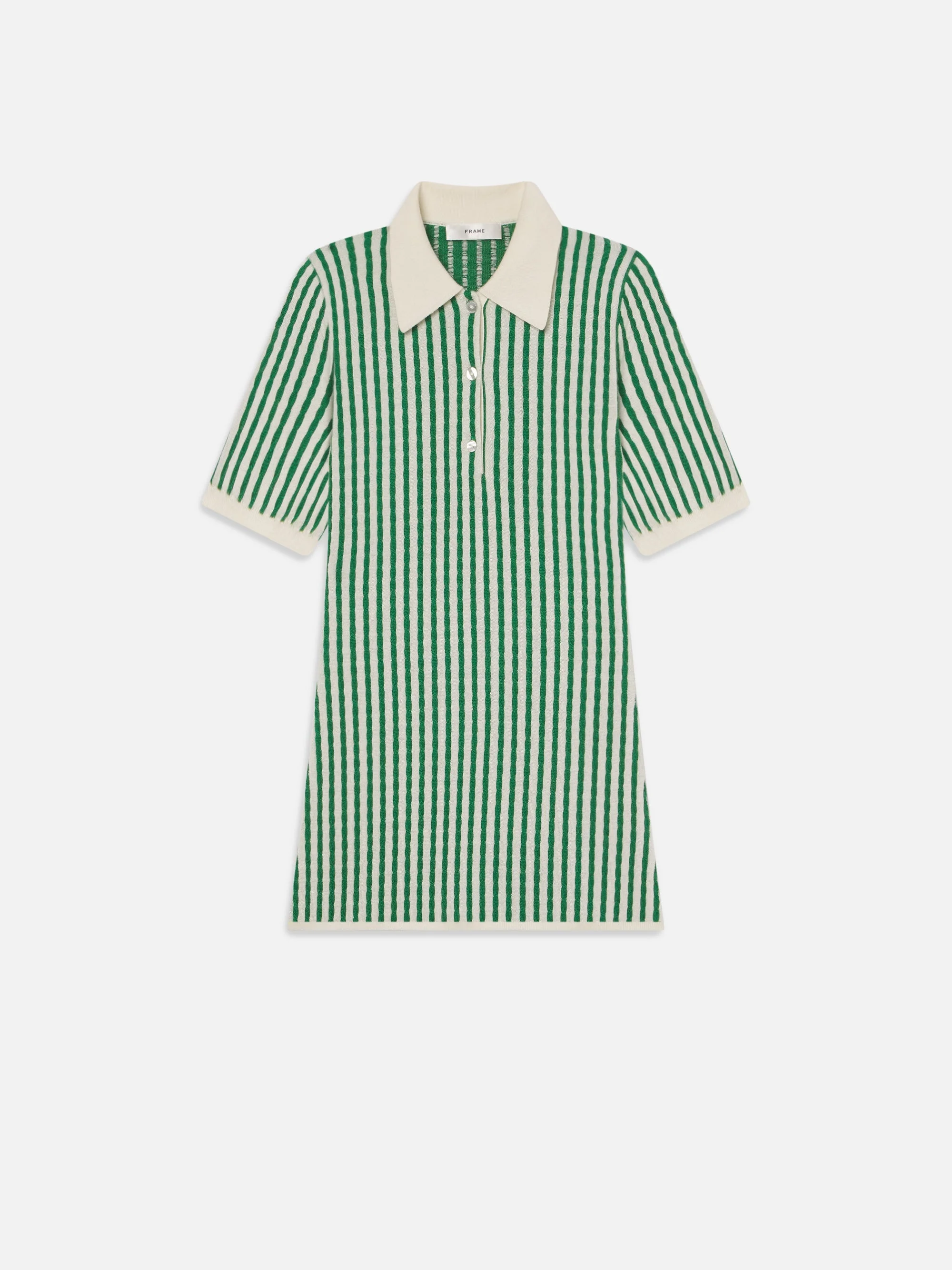 Sport meets softness. This collared dress is knit from a luxe cashmere-silk blend with a tactile cable stitch and subtle stretch. Style it simply—with low heels, clean lines, and let the texture do the work. Materials & Care Dry Clean Only 70% Cashmere/30% Silk 30.25" Long From Shoulder WS25KDR011-KLGM