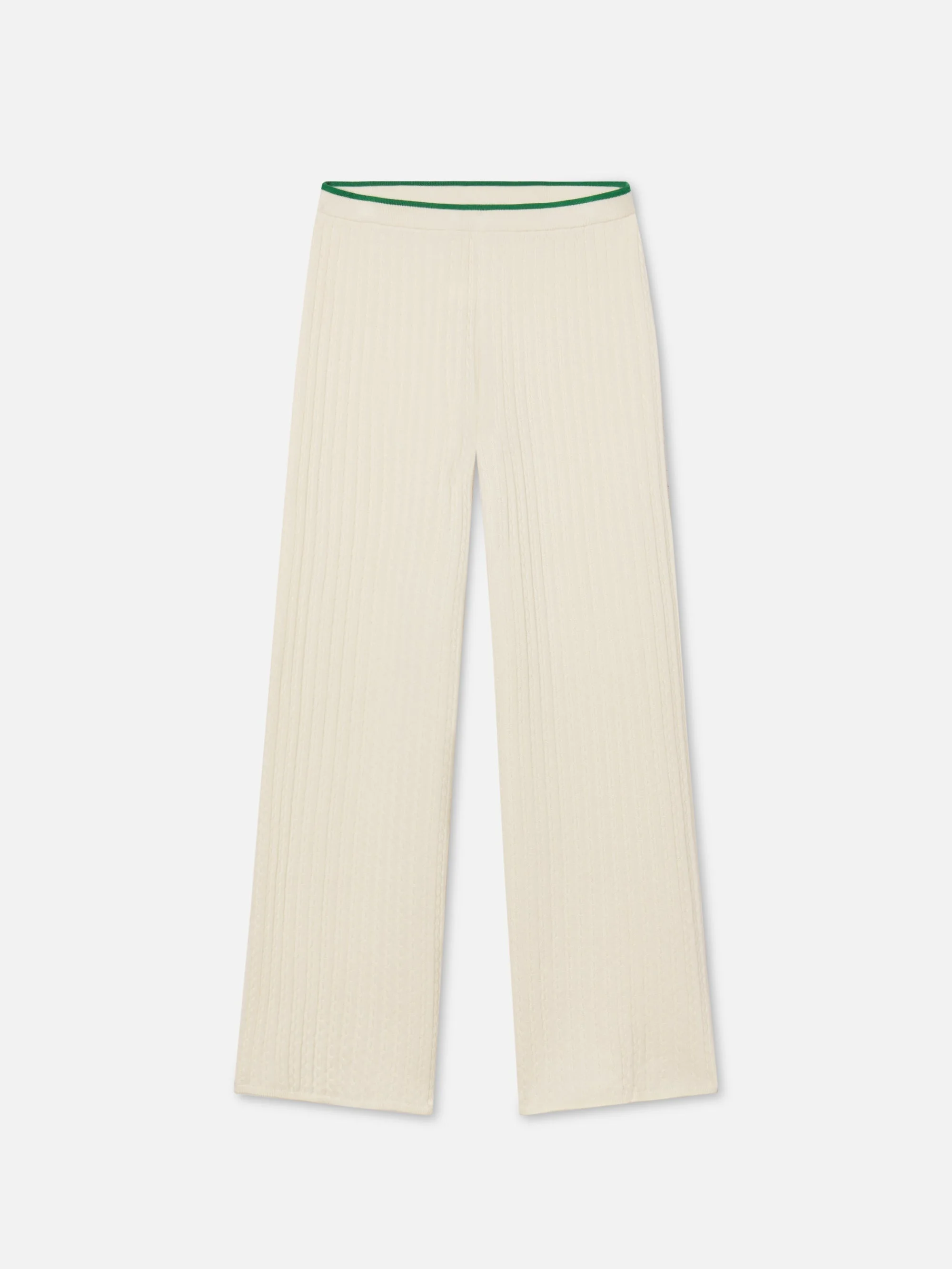Knit from a soft blend of cashmere and mulberry silk, this pull-on pant features a classic cable texture and elastic waistband. Relaxed but refined—especially when paired with the matching Cable Hoodie. A luxury lounge piece that lives beyond the sofa. Materials & Care High Rise Fit Dry Clean Only 70% Cashmere/30% Silk 11.5" Front Rise/31" Inseam/24.5" Leg Opening WS25KPA002-KLGM