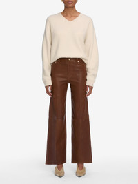 A favorite of the FRAME team. This effortlessly chic cashmere sweater has a slightly oversized fit, lightweight feel, and easy V-neck. Materials & Care Dry Clean Only 100% Cashmere 26.25" Long From Shoulder WF25KSW054-CREA