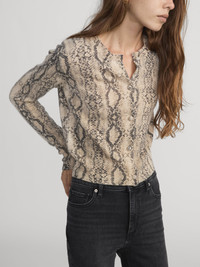 A luxuriously soft cashmere cardigan in the pattern of the season: snakeskin. Finished with cashmere-covered buttons for a unique polished touch. A classic crewneck silhouette with full-length, slim-fitting sleeves. DETAILS - Dry Clean Only - 100% Cashmere - 20" Long From Shoulder - WP26KSW048-CMMT