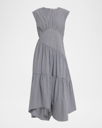 - FRAME gathered cotton midi dress decorated in a micro-check print - Crew neckline - Sleeveless - Tiered, A-line silhouette - Hem falls below the knee - Center back zip - Cotton - Imported
