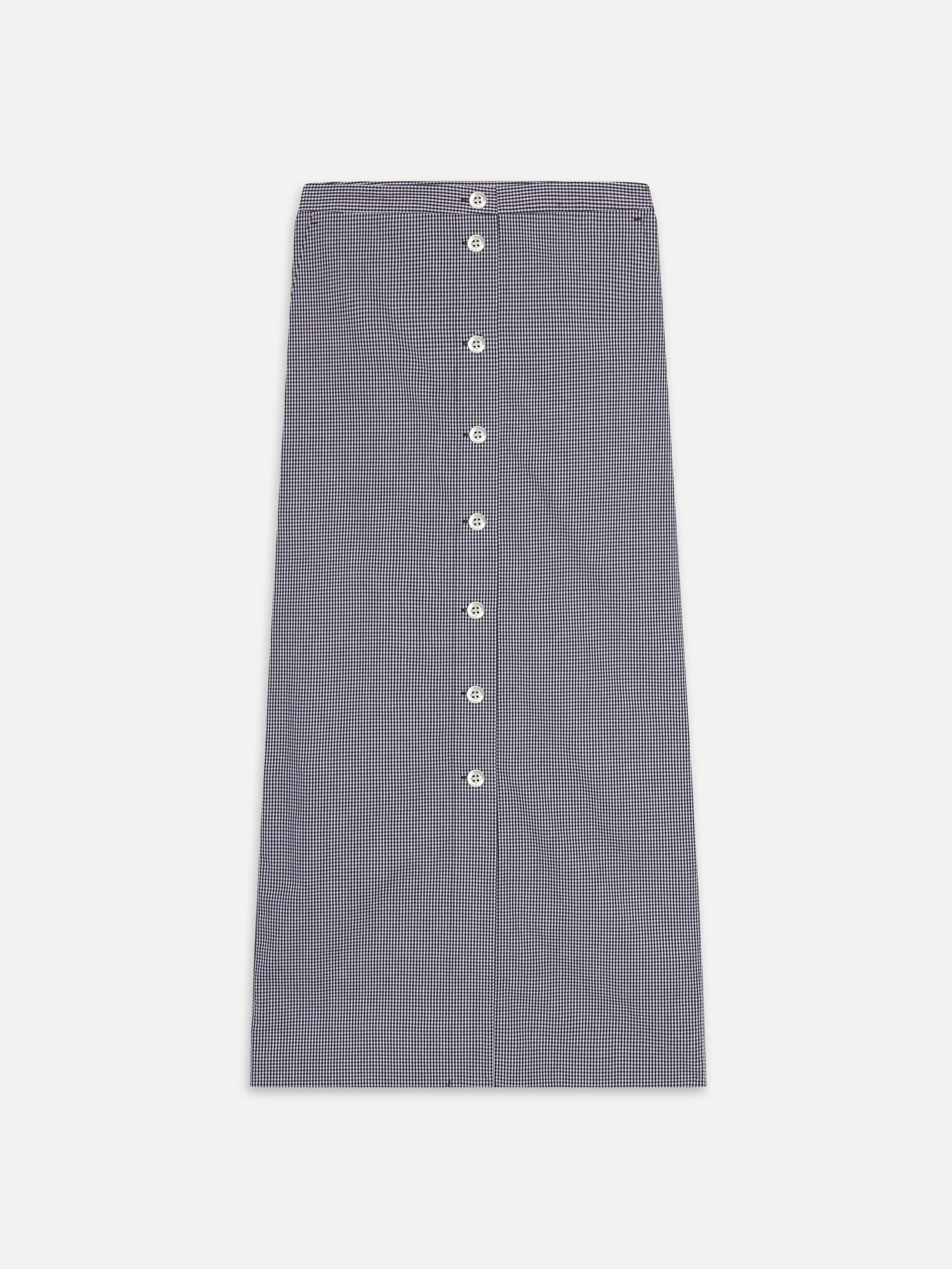 Check, please. This summer skirt has a classic A-line silhouette, covered in navy gingham with white buttons down the front. Lightweight in pure cotton, it’s made to pair with the matching top—or anything in your warm-weather rotation. Materials & Care Machine Wash Cold 100% Cotton 33" Long From Waist WF25WSK001-NAMU