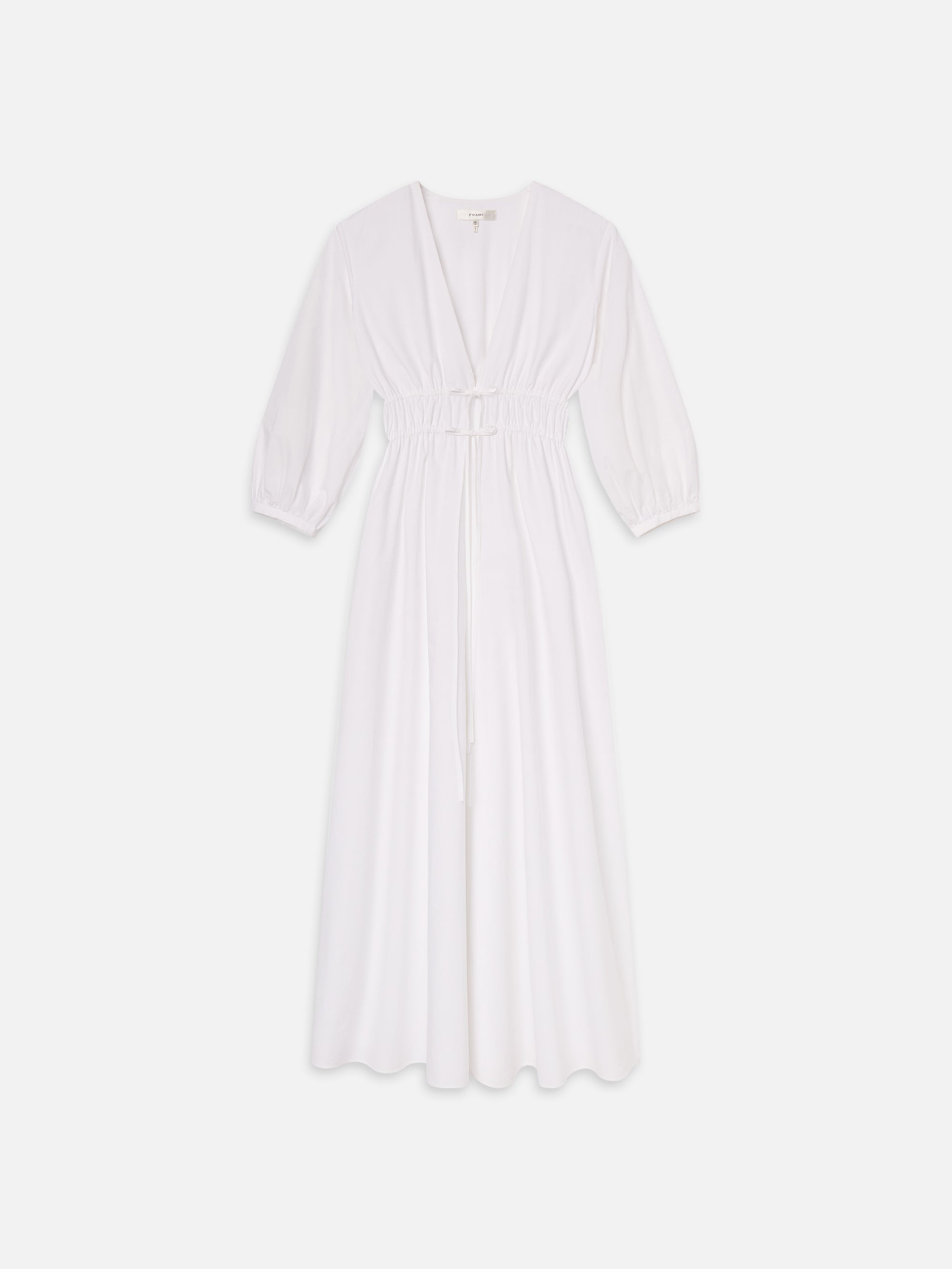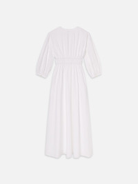 Airy, bright, and crafted in organic cotton—this is the dress you'll reach for all season. The Cinched Dress features a deep V-neckline, billowy sleeves and dual waist seams. Gathers angle in toward the waist, then splay into a full skirt, defining an hourglass silhouette. Materials & Care Machine Wash Cold 100% Organic Cotton 55" Long From Shoulder WS25WDR010-WHT