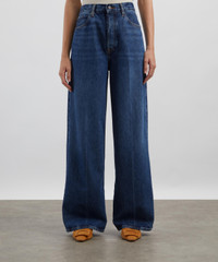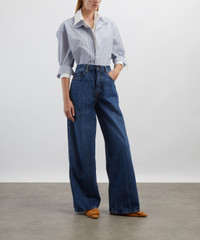 DETAILS Collegiate jeans Rigid denim High-rise Wide-leg Full-length Front rise: 12.5” Inseam: 32” Leg opening: 22.5” 5-pocket construction Front creases Designer wash: Galactic SIZE & FIT Model is 175cm/5'9"; Chest: 76cm; Waist: 58cm; Hip: 90cm and wears a size 27 COMPOSITION & CARE 100% Cotton Machine wash cold