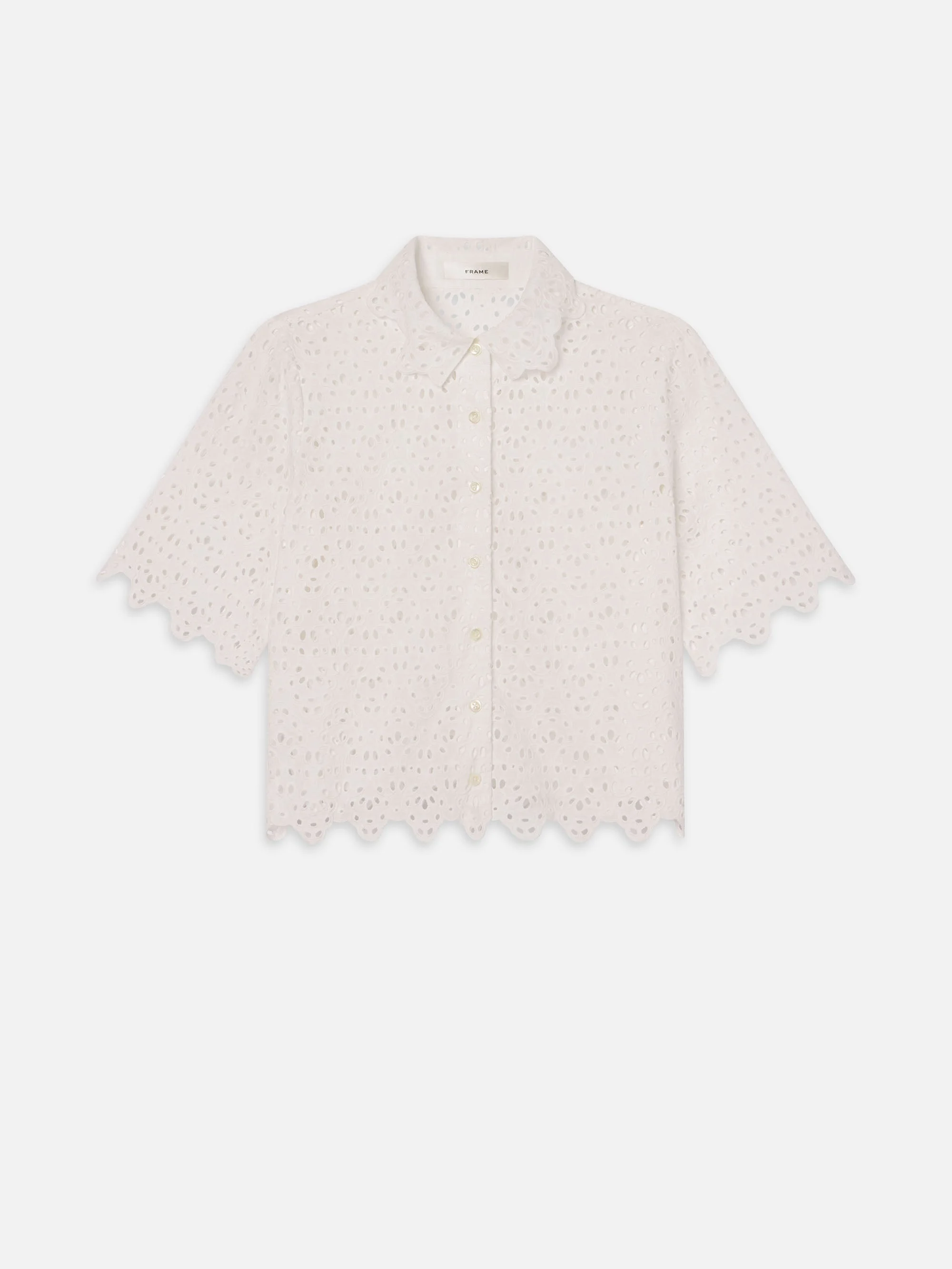 Our best-selling silhouette, now in a novel eyelet cotton. The Deco Eyelet Top features intricate cutwork for added texture and charm—crafted in 100% cotton with the same easy shape you know and love. Materials & Care Dry Clean Only 100% Cotton 21.5" Long From Shoulder WE25WSH007-WHT