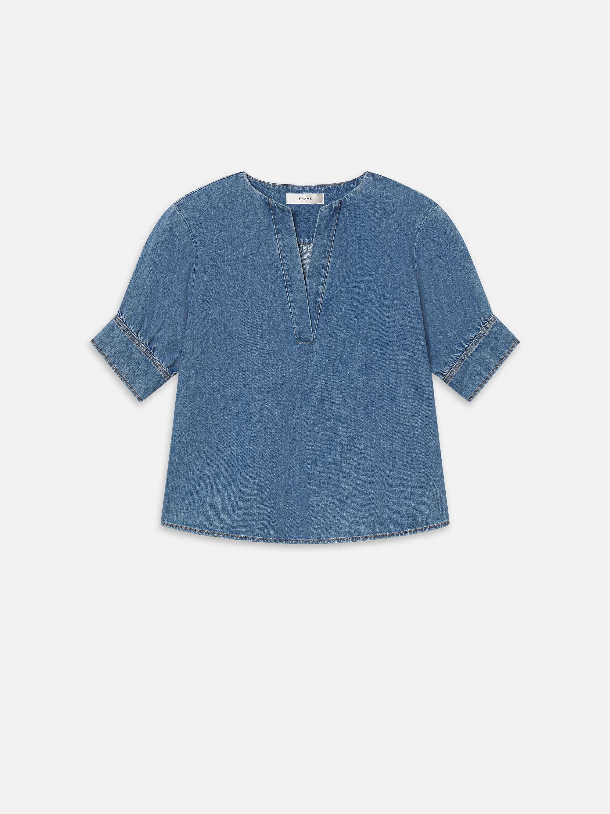 The Denim V-Neck Popover Top is crafted from an ultra-lightweight denim blend with lyocell and recycled cotton, reimagining our best-selling silhouette with a soft drape and effortless ease. DETAILS - Machine Wash Cold - 30% Lyocell Tencel/28% Organic Cotton/21% Pre Consumer Recycled Cotton/21% Post Consumer Recycled Cotton - 23.75" Long From Shoulder - WS26WBL043-SORA